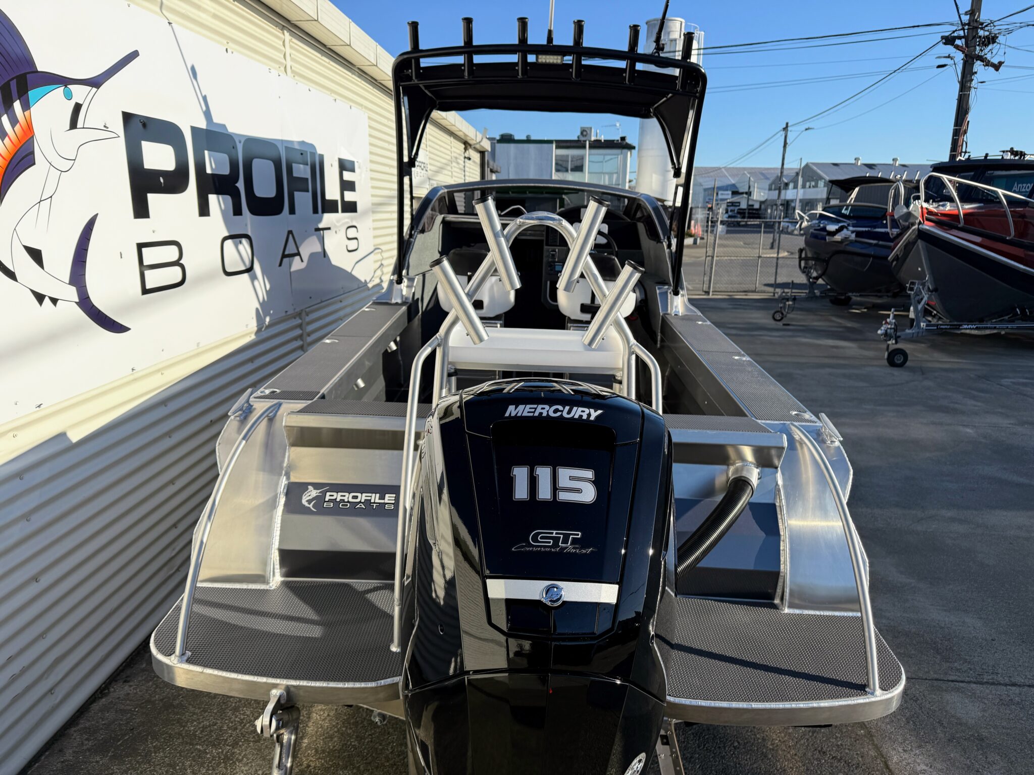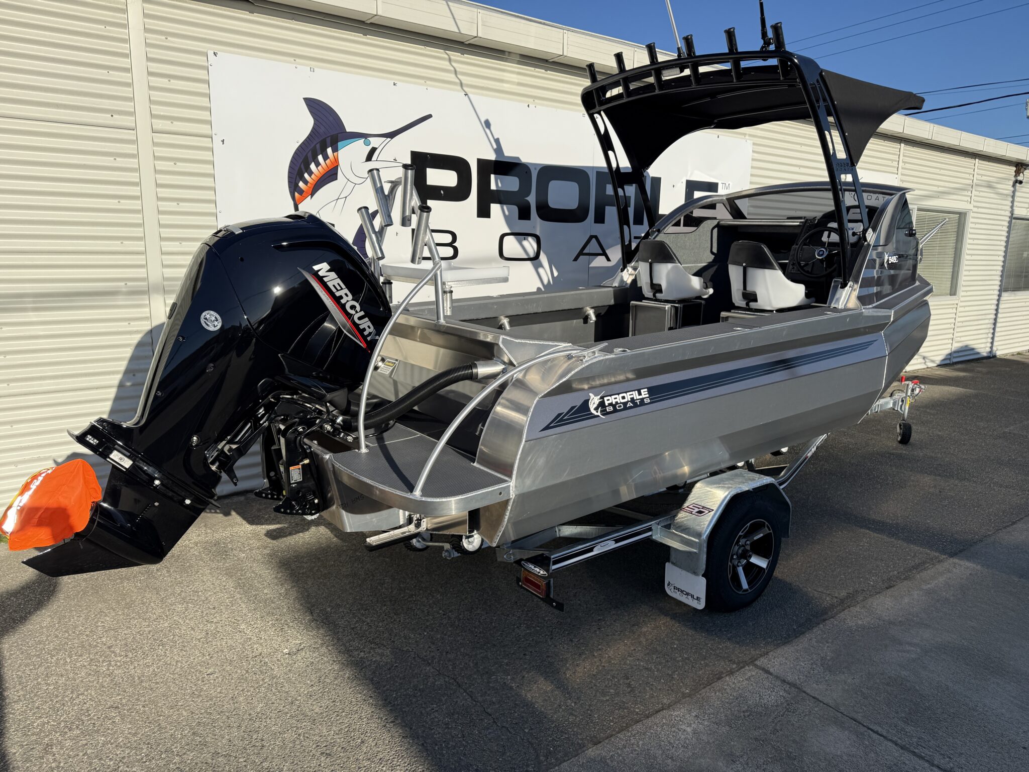 Vinyl wrap 545C. Cabin sides plus stern and side stripes.