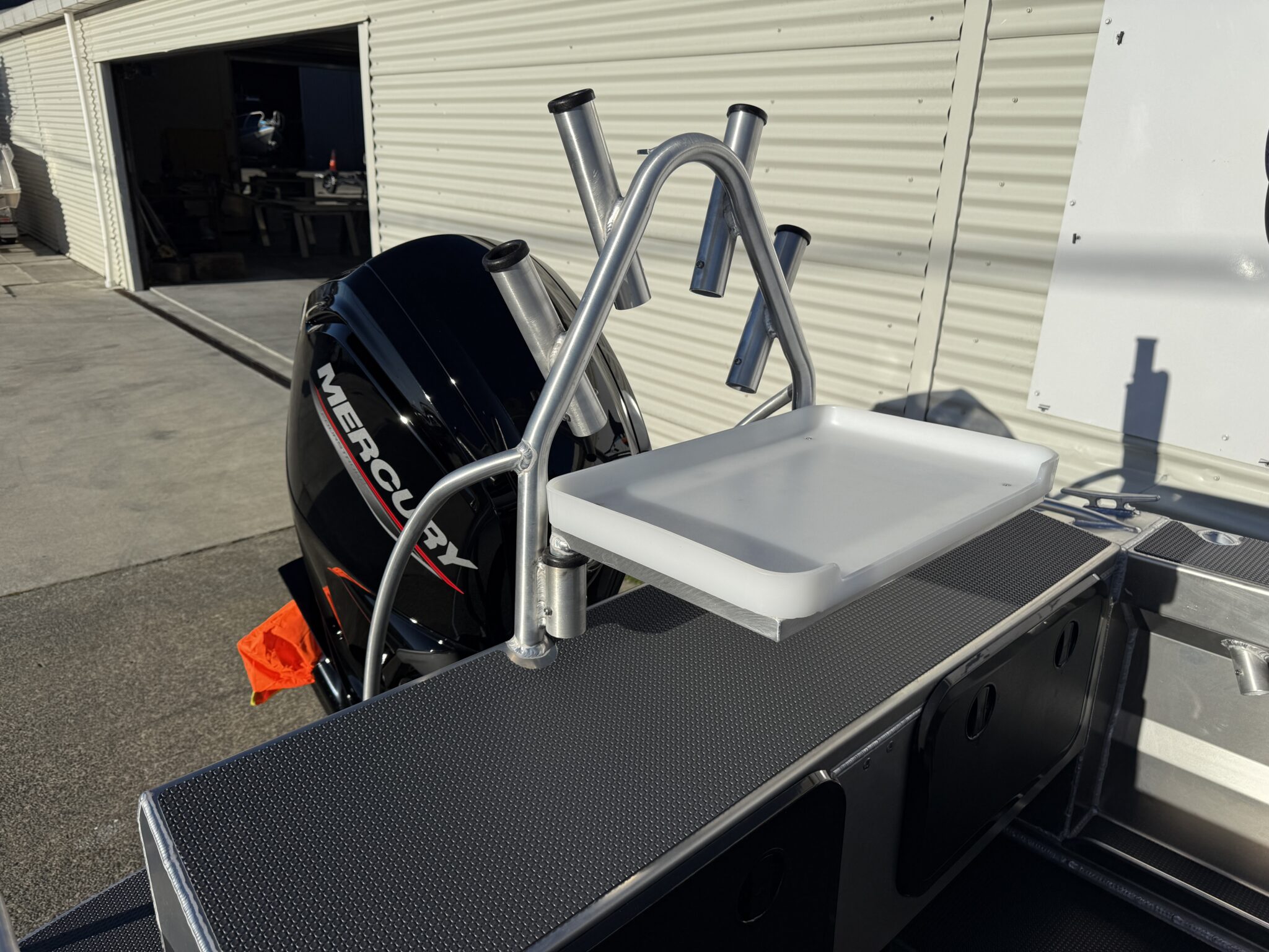Bait station – Cusho. Hoop style ski pole, bait board and 4 x rod holders.